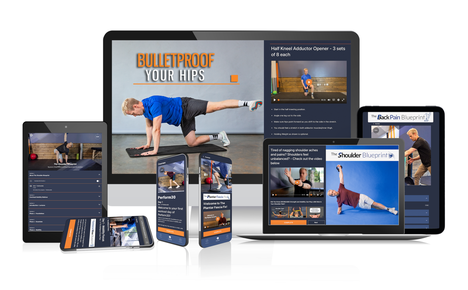 The Shoulder Blueprint, The Bulletproof Hip Program, The Back Pain Blueprint, The Bulletproof Knee Blueprint, MobilityFirst, Perform30, and The Plantar Fascia Fix